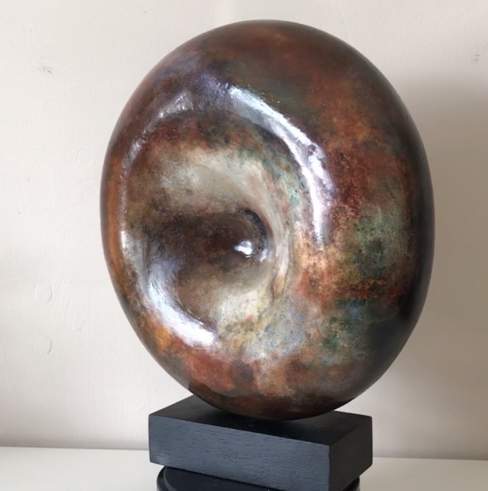 Brian’s ceramics and sculptures are mainly unplanned, intuitive and eclectic. Rarely starting with a preliminary design, his process begins by letting raw clay or visual art take him on his creative path. Formed in stoneware and earthenware, he fires his works with glazes and oxides in a gas reduction or electric kiln, a raku kiln or by earth pit firing. He then adds other mixed media to the sculpture if necessary.
